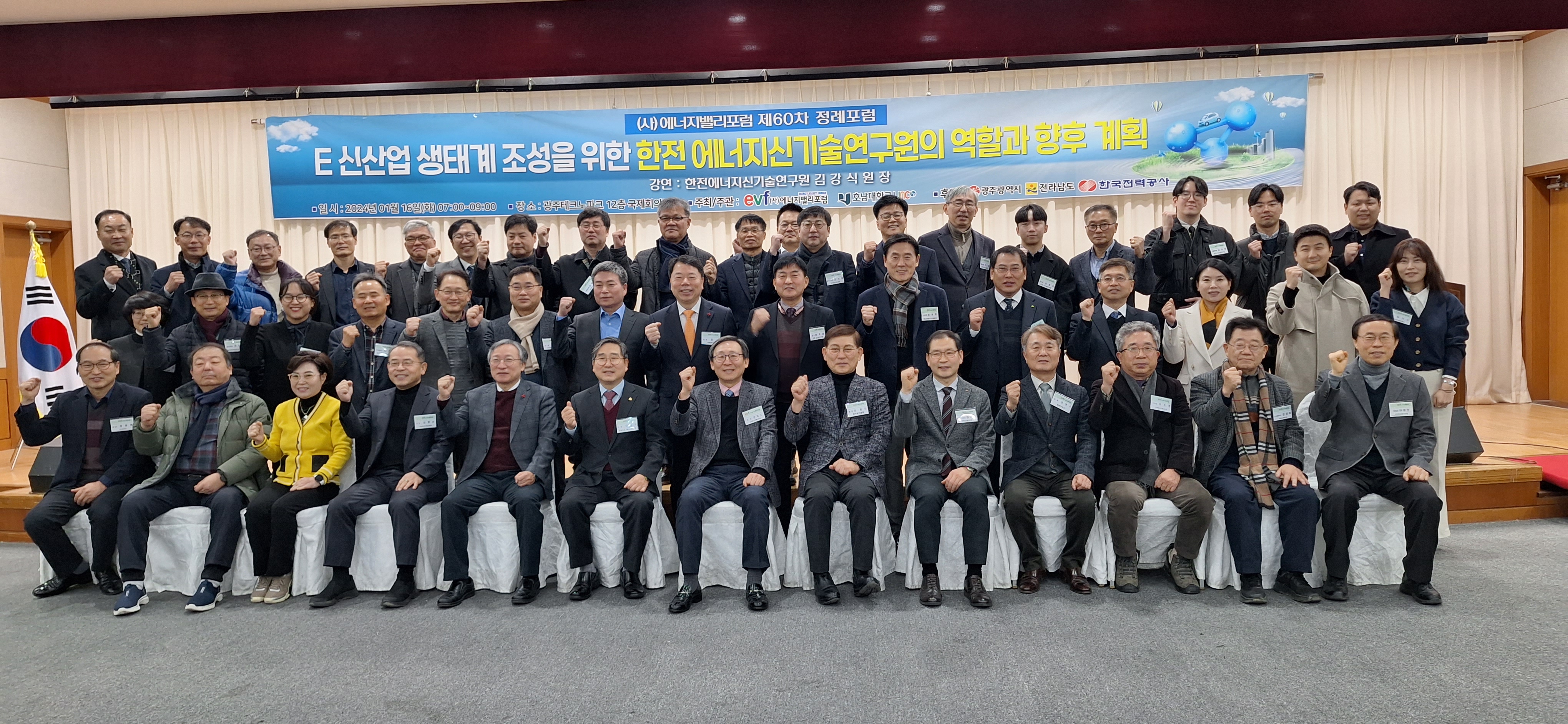 2024.1.16(화) 광주TP 12층 국제회의장에서 개최한 제60차 정례포럼 단체사진입니다